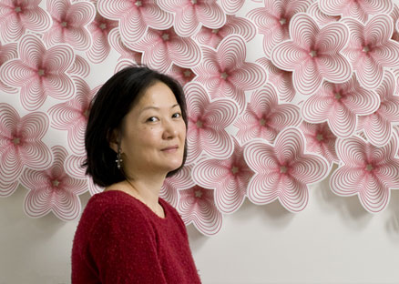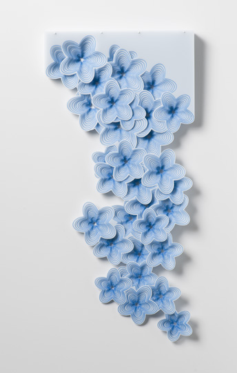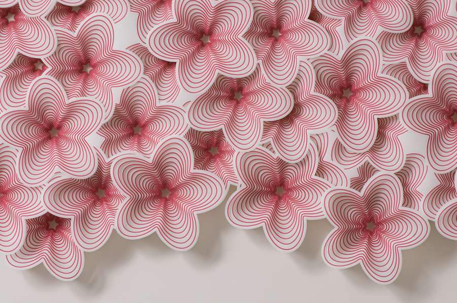 Georgia artist, Imi Hwangbo creates serene pieces by hand-cutting mylar and painting them with archival ink. Exquisite and one-of-a-kind.