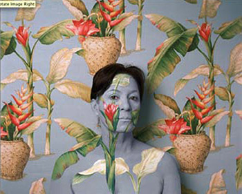 Peruvian artist, Cecilia Paredes, paints her backgrounds and her subjects, to create these arresting photographs.