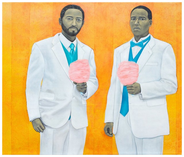 I was immediately drawn to the pin-neat apparel on artist Amy Sherald’s engaging subjects. Her style makes me want to get out a can of Faultless spray starch.