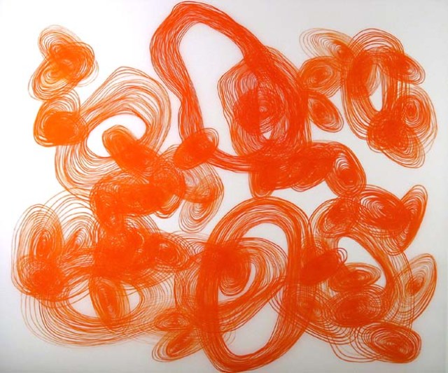Artist Mary Temple gives new meaning to monotonous activity in her “1,000,000 Ellipsoids Series”. Each ink on mylar piece is numbered and chronicles her progress. I get writers cramp just looking at them.