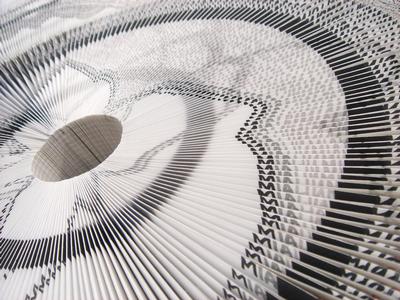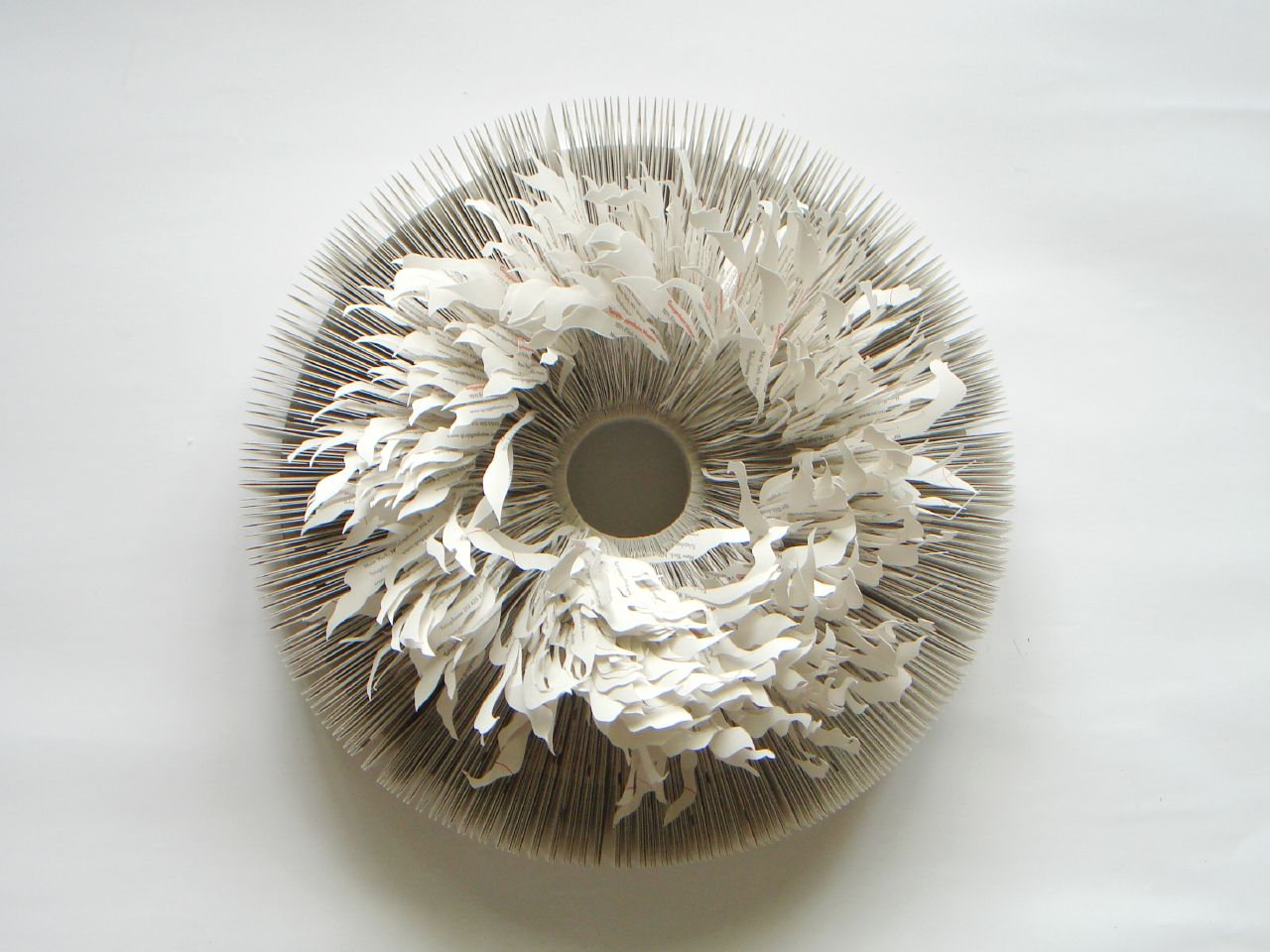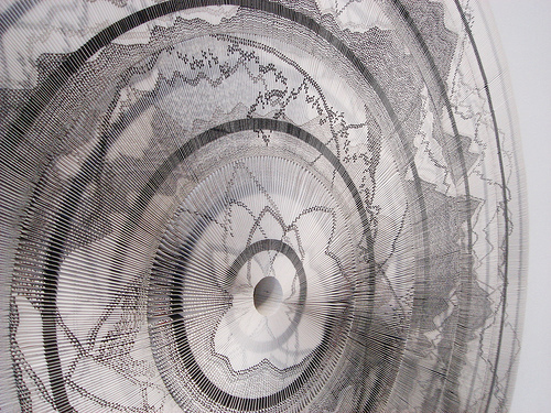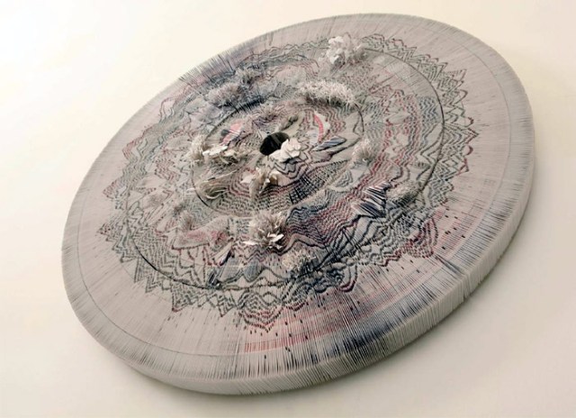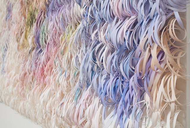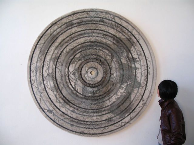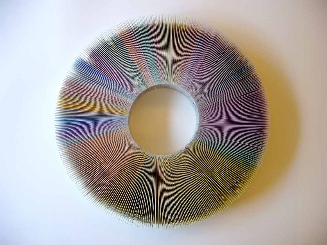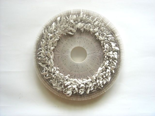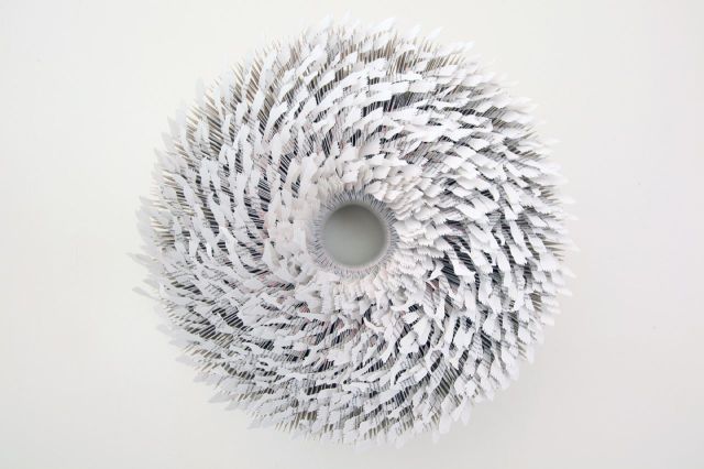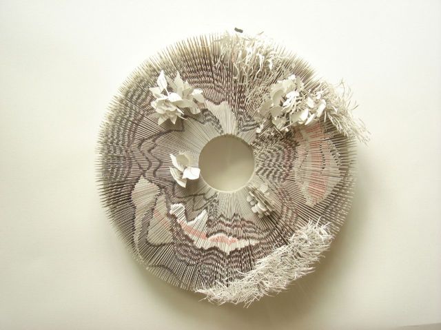 Artist Mia Liu had a more upscale assignment collecting admissions at the Guggenheim Museum. Rather than dispose of the stubs she reuses them to create these wonder wheels. These too will turn some heads.