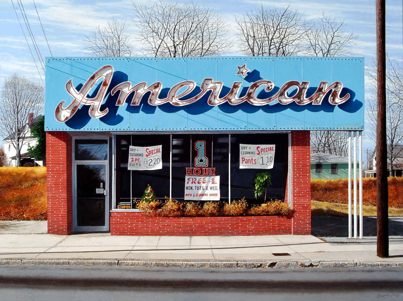 The American Building is in my neighborhood. The sign is gone now, though. It was a cool piece of signage. Glad the artist captured it.