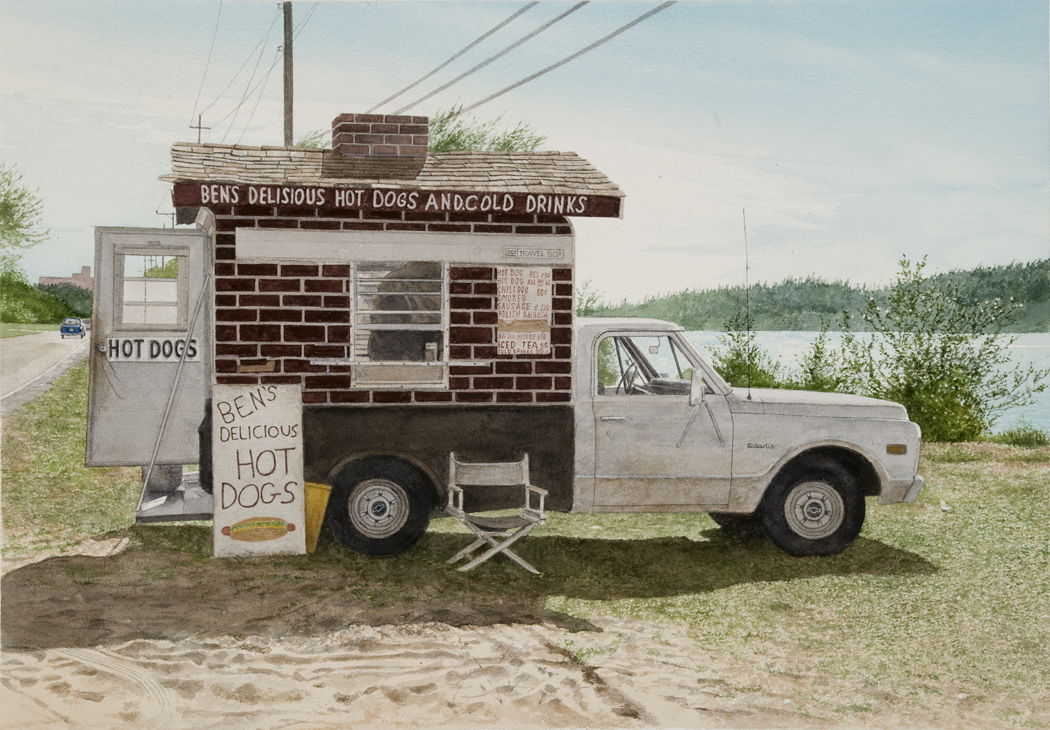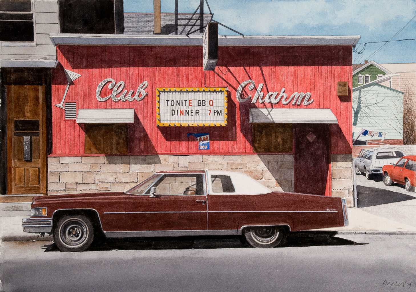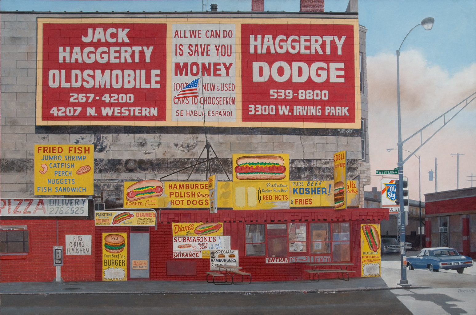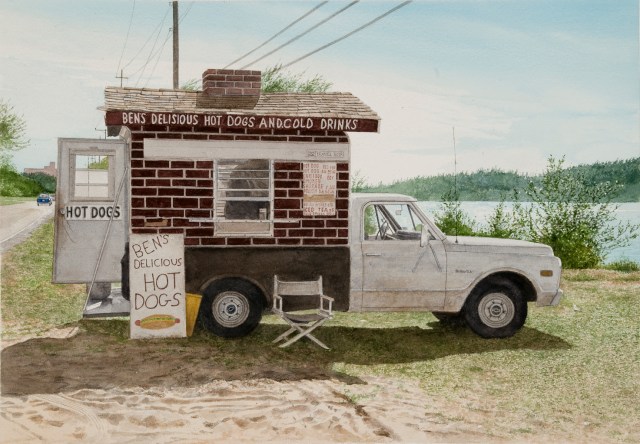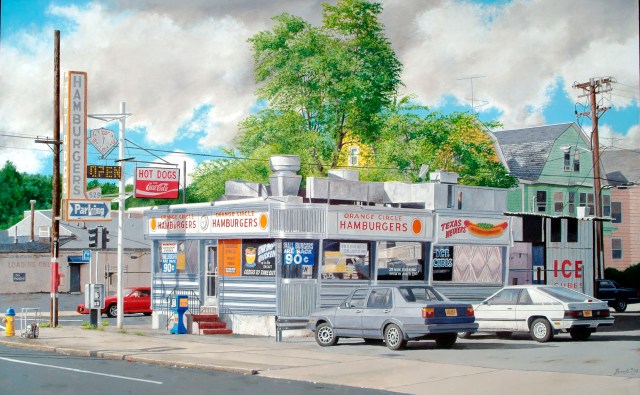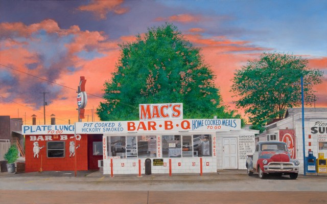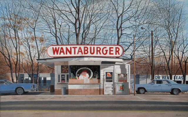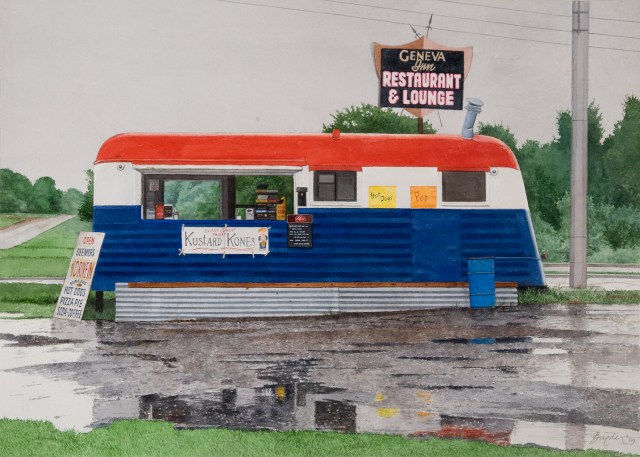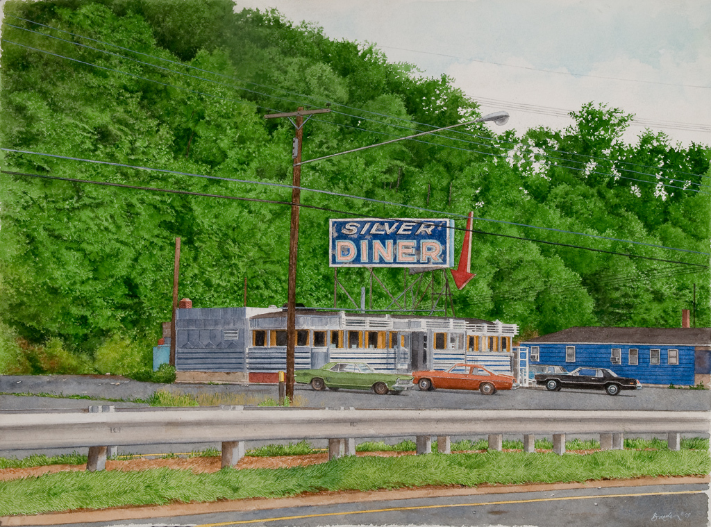 Artist John Baeder knows where to go to get “Adam and Eve on a raft“. His subjects are wide-ranging but his distinguished career as a photorealist and painter of roadside dining establishments has defined a category.