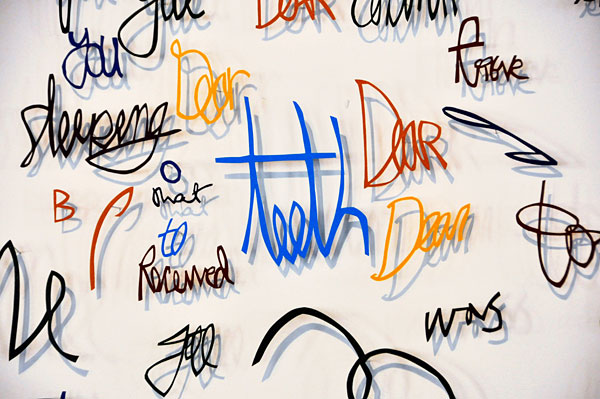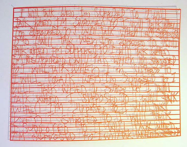 No matter what my neurosis, I’m pretty normal compared to artist Annie Vought. This woman is from some other planet in my opinion. She CUTS script from paper! I give her an A+ in “penmanship”.