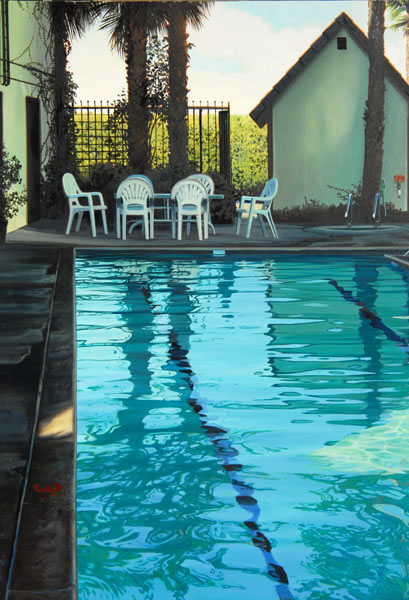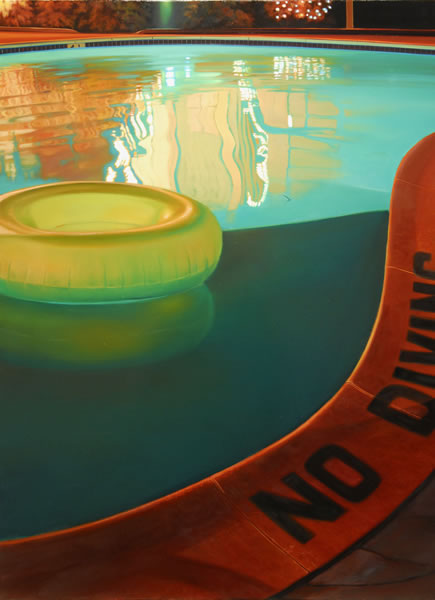 Here is another pool painting. This one is by Nina Nolte https://www.mutualart.com/Artwork/How-deep-is-the-ocean—from-the-series-/E50C5009A2258861. It has softer colour tone, but still looks great to me. I have always been interested in how artists make water texture looks so real in their paintings.