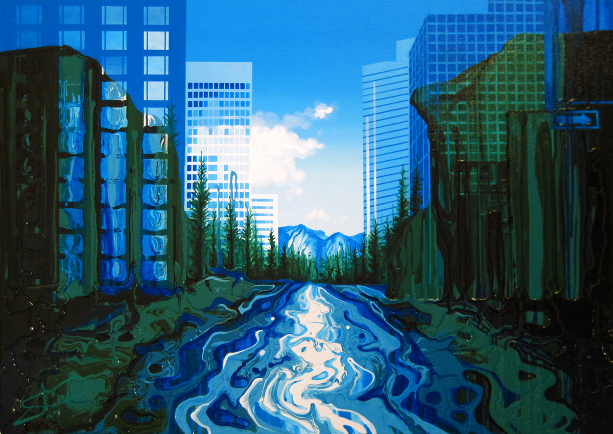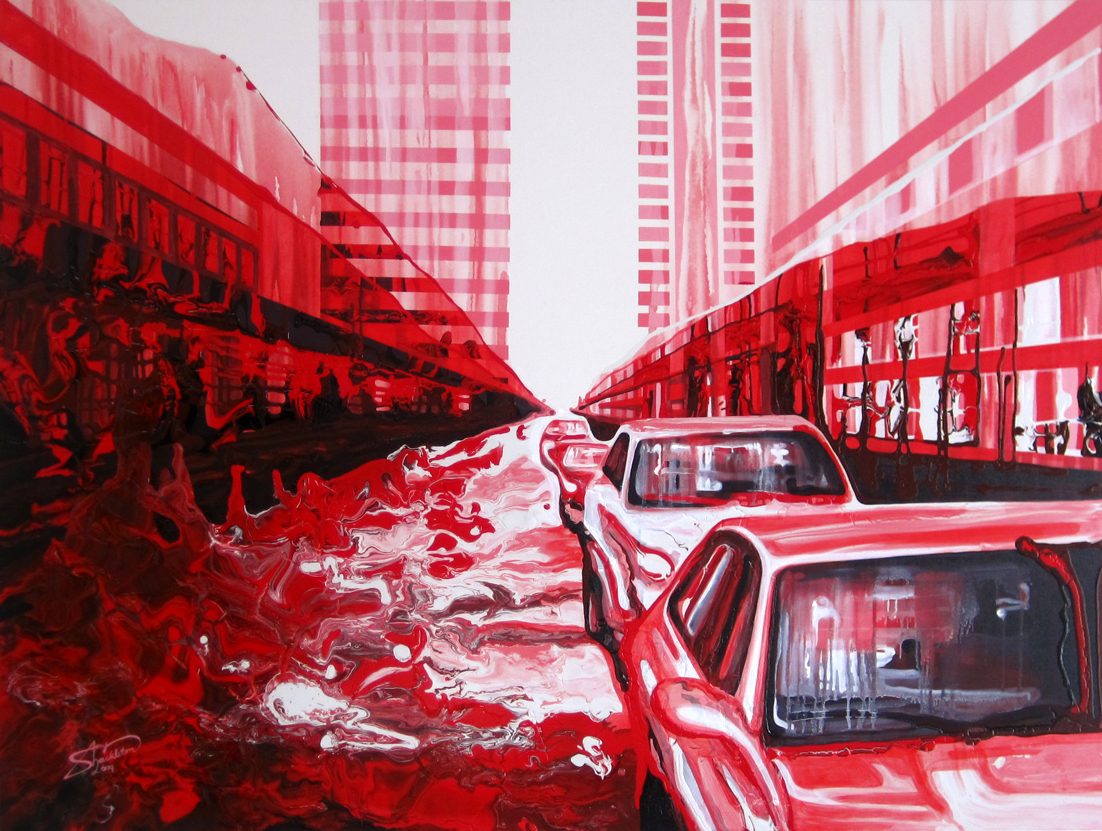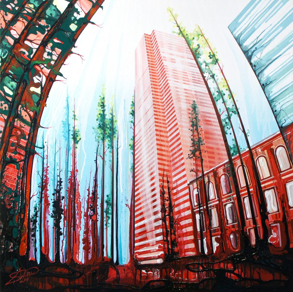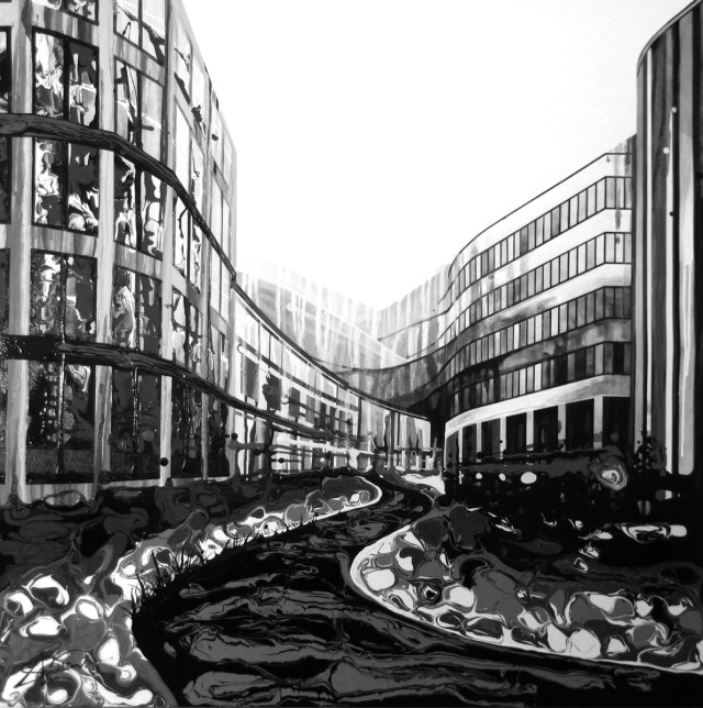 Sometimes HOW you do something is as interesting as WHAT you do. Amy Shackleton’s work is a case in point. Her paintings are created using only squeeze bottles filled with paint which she applies by constantly rotating the canvas. Gravity is her best friend. The video below is worth a watch.
