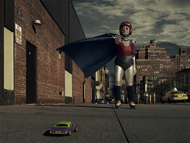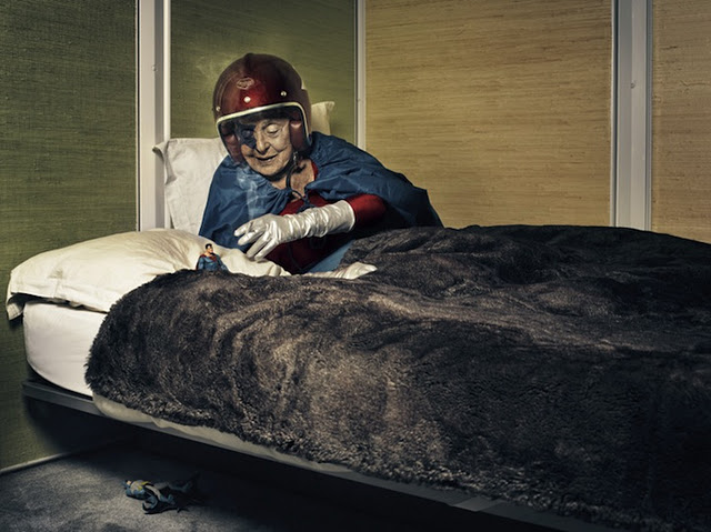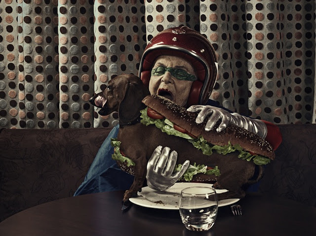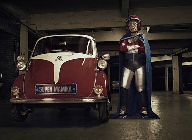 Sacha Goldberger found his Hungarian grandmother in a funk and decided to shake things up by casting her the star of this series of photographs entitled, “Mamika.” Props.