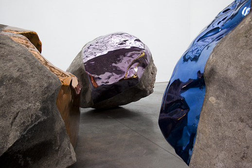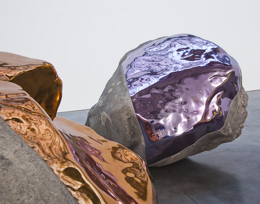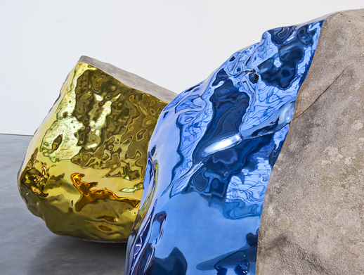 Versatile genius Jim Hodges is exhibiting these aluminum plated stone sculptures currently at the Gladstone Gallery in New York. Great looking cavities.