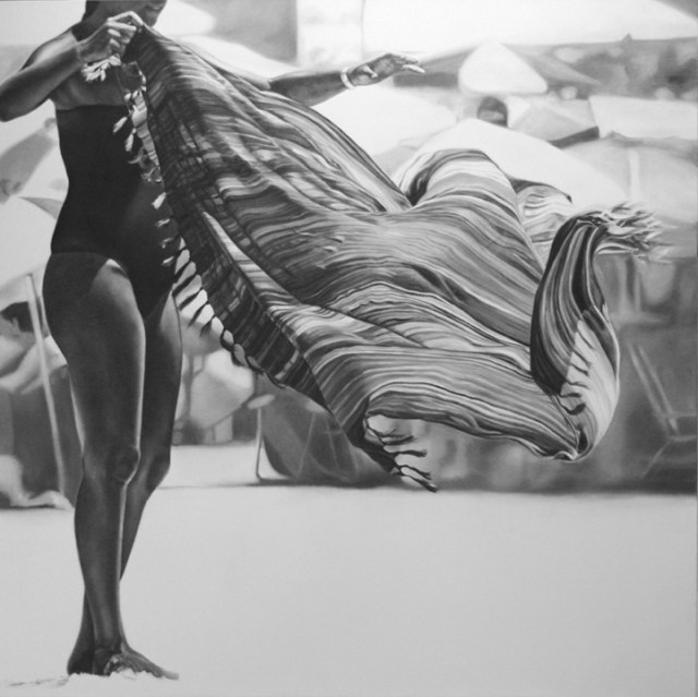 Sun worship, with or without protection, is the theme in these warm and wonderful paintings by Marta Penter. Very aPEELing.