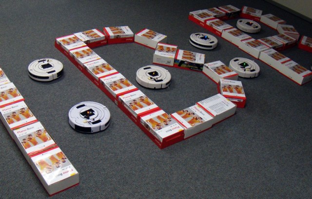 university of technology, create designs by constructing obstacles, thereby designating space that the roombas cannot pass into