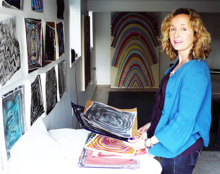 Hadley Holliday must be channeling the color vibrations of Frank Stella, Helen Frankenthaler, and Morris Louis. She may have actually caught the rainbow.