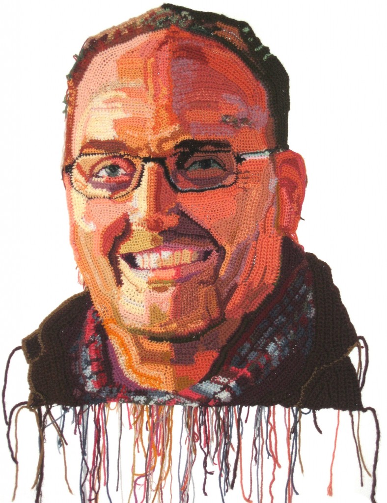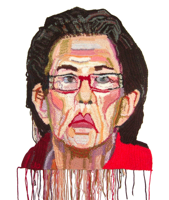 Artist Jo Hamilton knows how to keep things loose. Her crocheted portraits are twisted and fun.