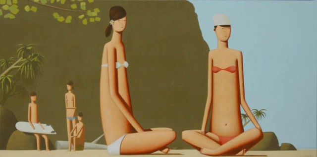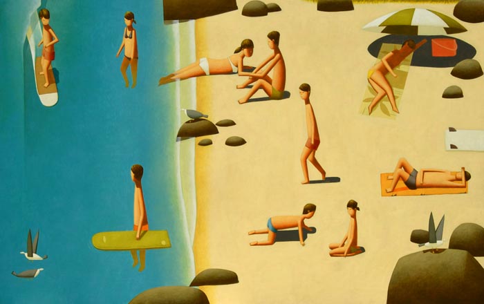 Artist Craig Parnaby captures the vibe with his less than cloth burdened sun worshipers.