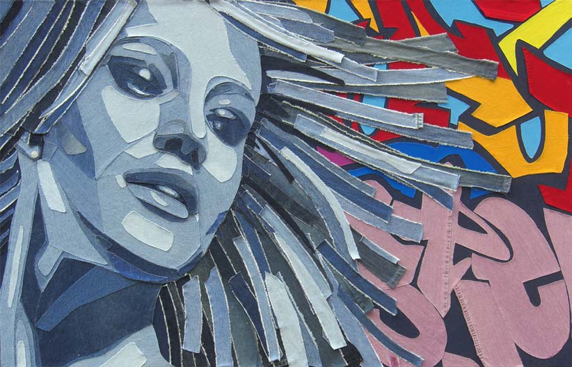 Young and brilliant artist, Ian Berry, knows how to shake the blues. His portraits and landscapes are made ENTIRELY of discarded denim. I’m going to slip into my Hudson’s now and face the day!