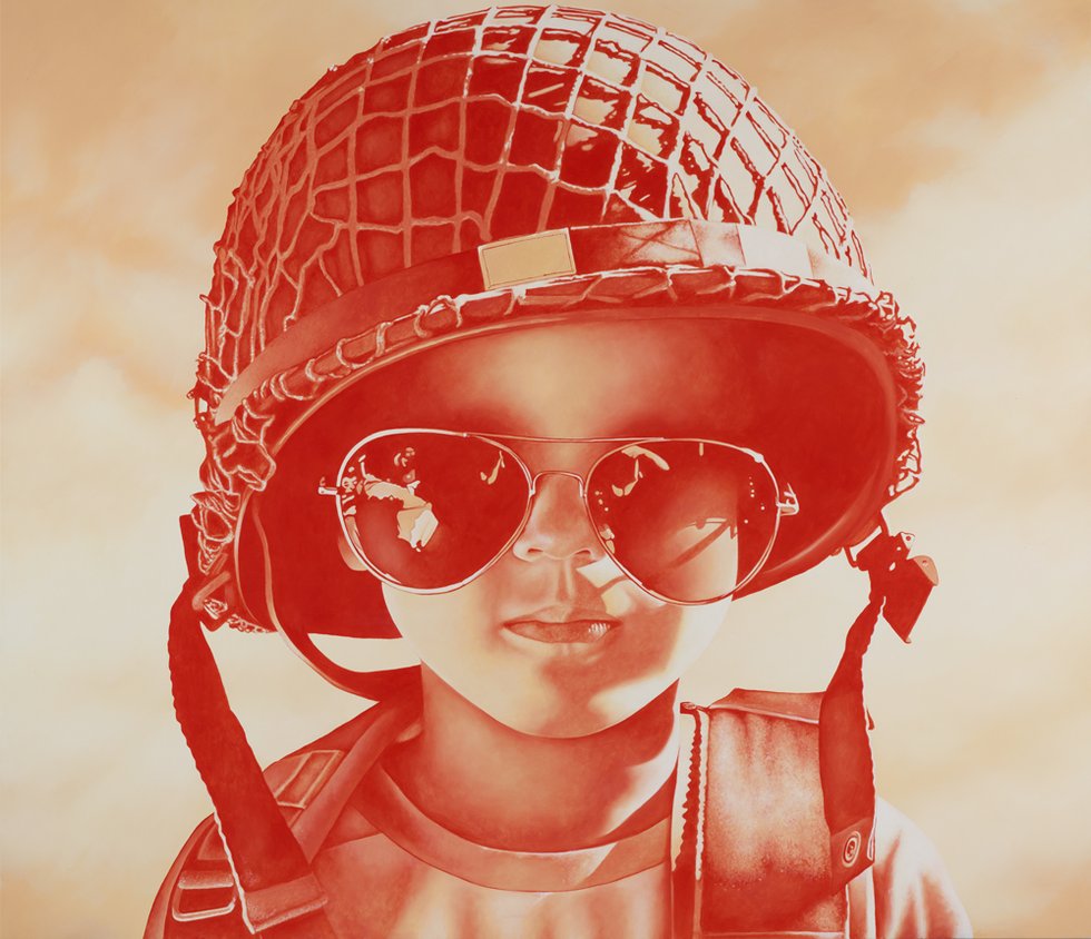I grew up without a television set. My parents were not keen on the distraction. Ergo, I missed some important cultural references from the ultra cool ’70’s programming. Who WAS the $6 million Man? Where IS the Planet of the Apes? Are the M*A*S*H guys getting a military pension these days? Artist Michael Peck targets a certain oeuvre in his work that harkens back to those bellbottom days. I’m tuned in now.