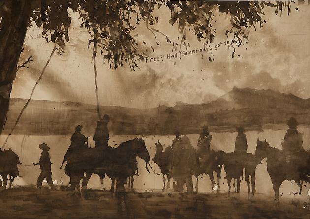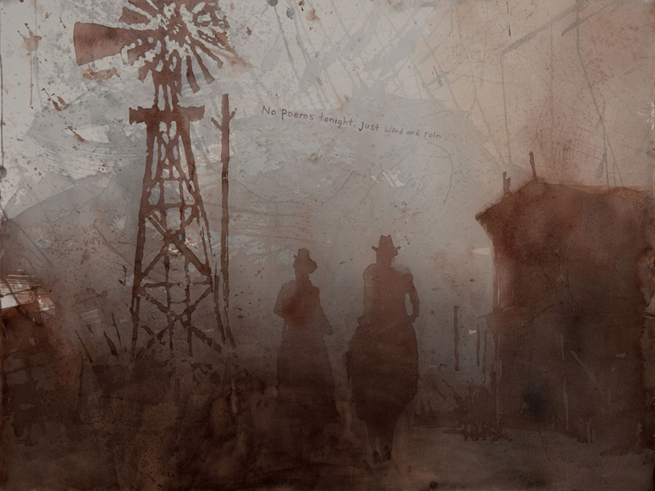 I watched a fantastic Ken Burns documentary a few weeks back on the “Dust Bowl”. Highly recommend. These inky/sooty watercolor paintings by David Rathman put me in mind of it. True Grit.