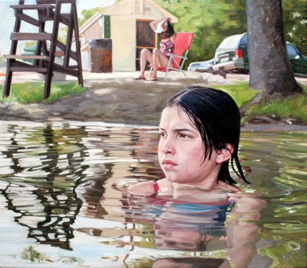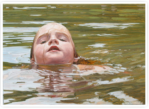 Laura Sanders captures the most vulnerable expressions. I have kept the top painting which is entitled “Faye” on my computer screen for the past two years. I know that look. She’s determined to swim but just barely keeping her head above water. I’m sure her mother or father are close by in the lake, arms extended and encouraging. Or maybe they aren’t. One way or another, this girl ain’t goin’ down…