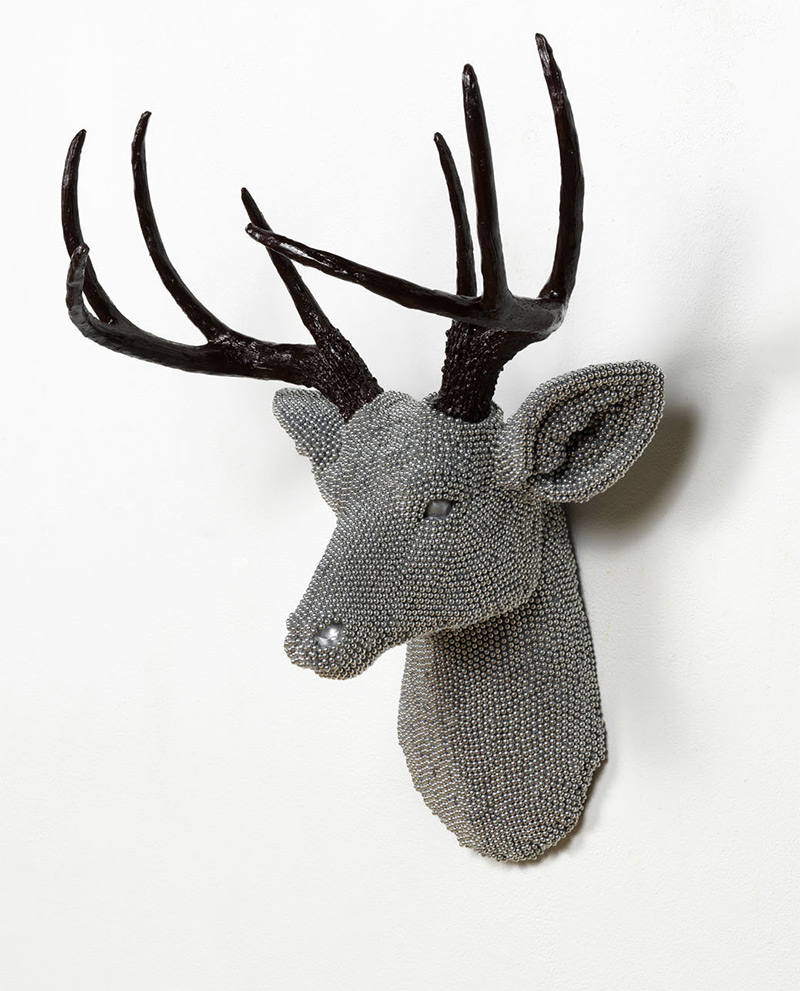 Cool, while I like repurposing, calling these your sculptures (hers) is a bit if a stretch. She has essentially bedazzled the wonderfully crafted premade heads built at the etsy shop fauxwhitetaxidermy. It has a nice look and feel though, don’t get me wrong.