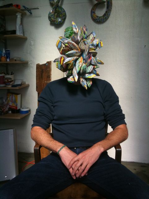 Today, I present Alex Lockwood. If you are wondering what the heck he is hurling into the sky in the above picture, you have company. All I know is I like it. According to his website, it involved an awful lot of bottletops. He has a penchant for the recycled as you will see further down in the post. Lottery tickets are turned into what I would call “The Garden of Good and Evil”.