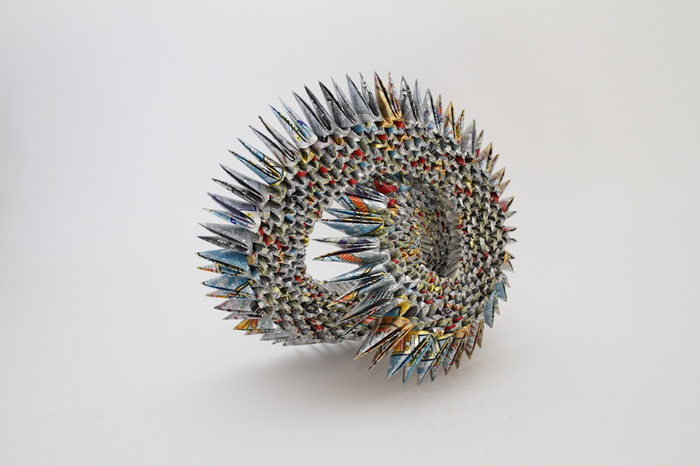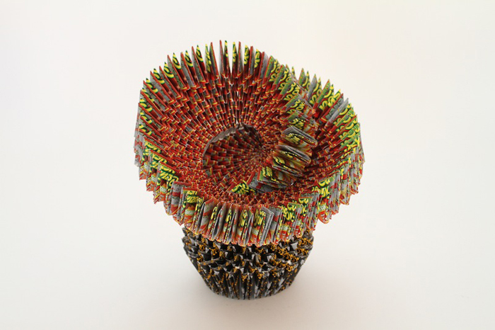 very cool. You being a fan of objects made of magazines (vase I once received) and paper is obvious here, These abstract objects are beautifully intricate.