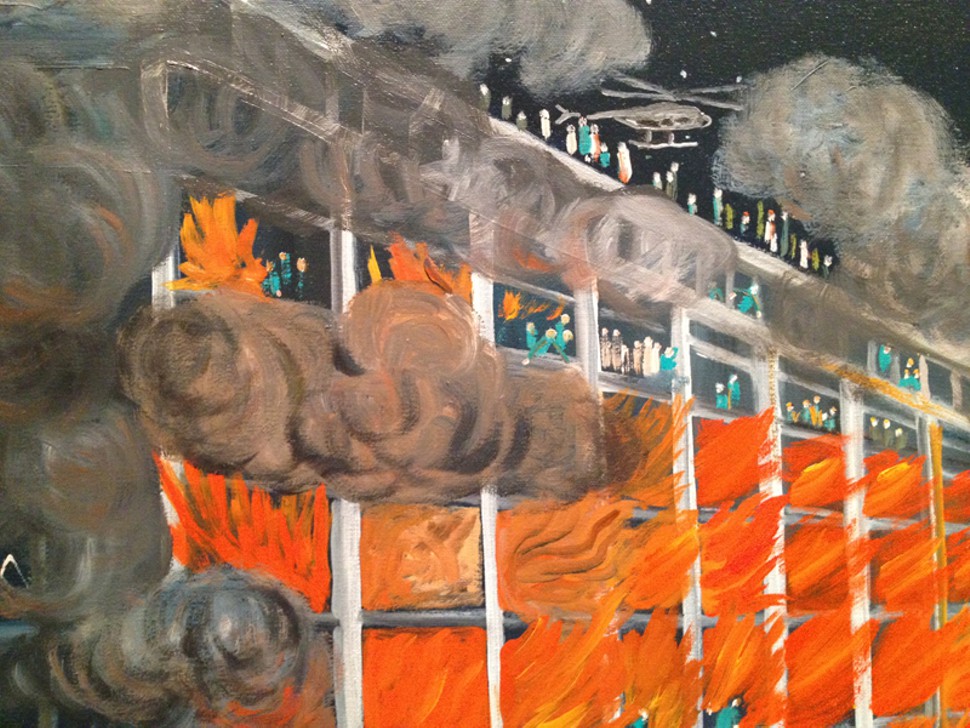 Really excited to see her work–have heard about her but never had the chance to see it in person. The building on fire is especially moving.