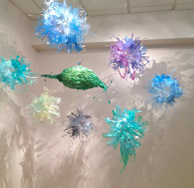 I’ve posted many times about the plastic trash vortex (allegedly the size of the state of Texas) which is located in the Pacific Ocean. Between that and photographer Chris Jordan’s heart breaking photographs on Midway Island of bird carcasses exploded by plastic ingestion I’m close to foreswearing bottled water forever.
