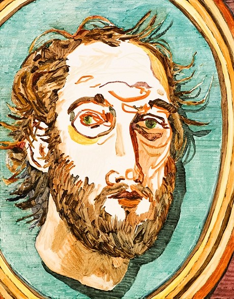 Artist Howard Fonda outlines a number of faces and places in a minimalist style. You get the picture.