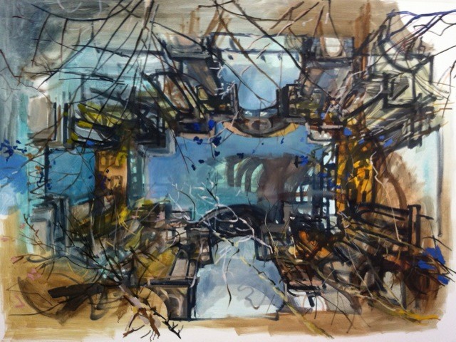 Things are looking up. These paintings of ceilings and skyward views by Alexandra Armstrong lift my spirits. Their their numinous qualities include unusual perspective and transcendent colors. You can see more of this artist’s work in this month’s Ostrich Review. Why not even purchase a smaller work on Taigan.com?!