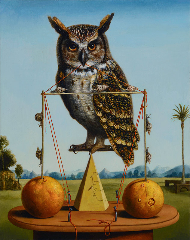 These remind me of a much more benign Bosch- in the tonality and slightly taxidermic vibe. Love the gal in the leotard!