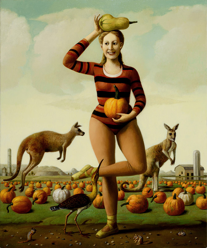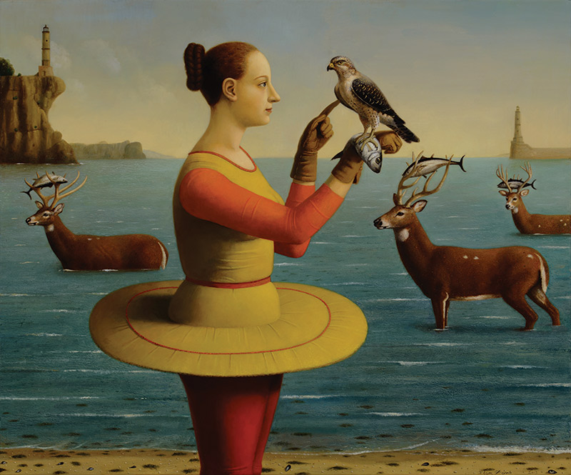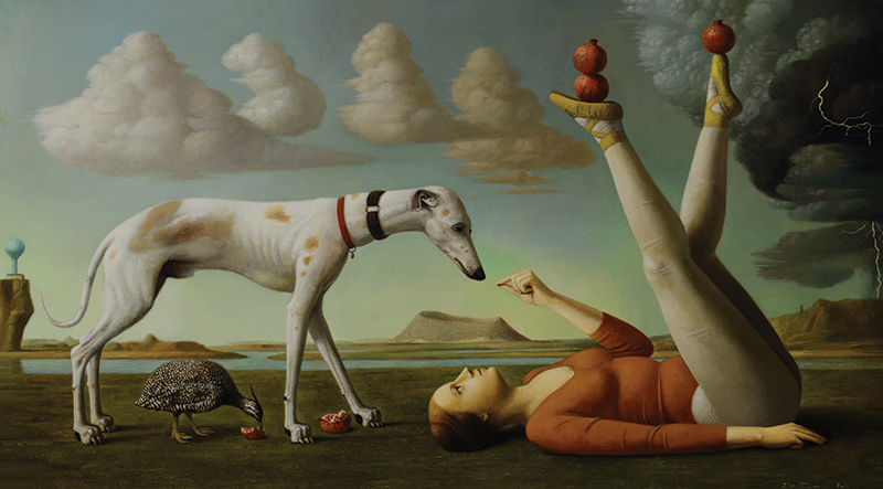 Russian-born painter Ilya Zomb knows how to catch a dream. His subjects are depicted in implausible scenes, often frolicking with wildlife. Viewing them is hypnotic but far from soporific.